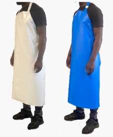 Tablier PU bicolore bleu/blanc sangle cou réglable 300 µ 900x1150mm